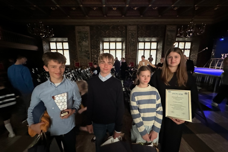 Tokarska Julia, Przybyłowicz Ada, Zemla Szymon, Krzyk Franciszek i Bajor Lena – gratulujemy Wam wiedzy, zaangażowania i świetnej współpracy!