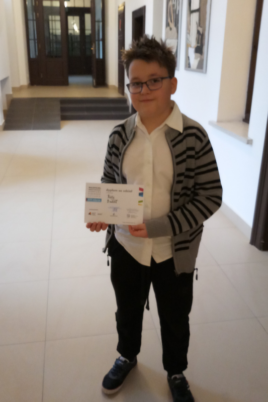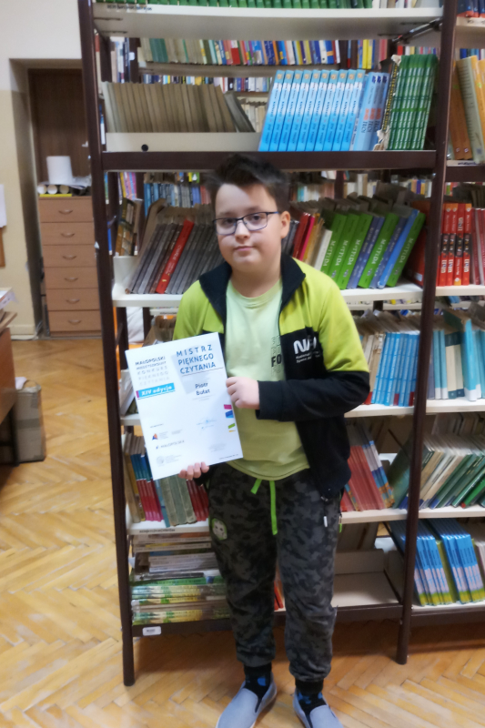 Dzięki wspaniałej interpretacji utworu i dykcji zajął I miejsce i został Mistrzem Pięknego Czytania.