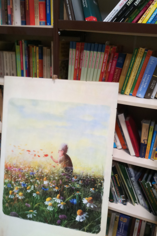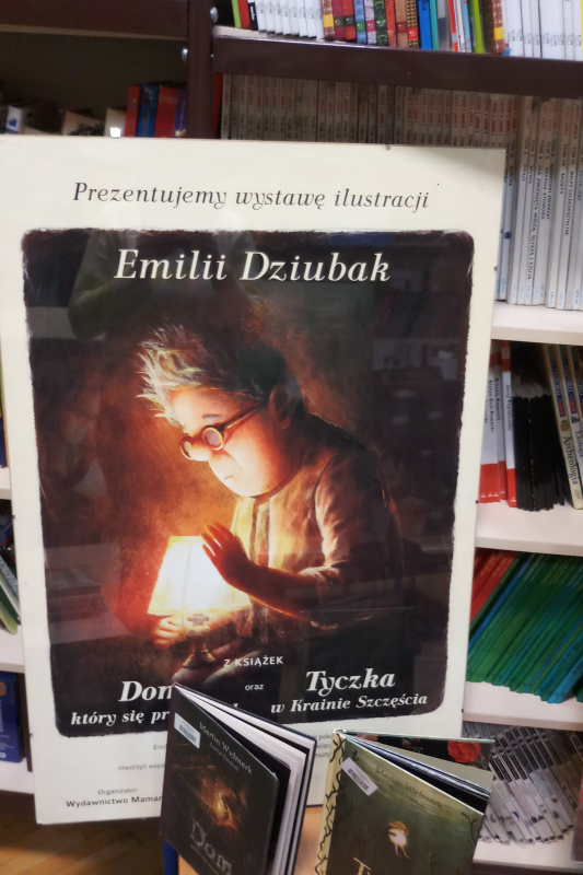 W listopadzie można było zobaczyć w Bibliotece szkolnej wystawę ilustracji pani Emilii Dziubak, które pochodzą z książek Martina Widmarka: Dom, który się przebudził i Tyczka w krainie szczęścia.